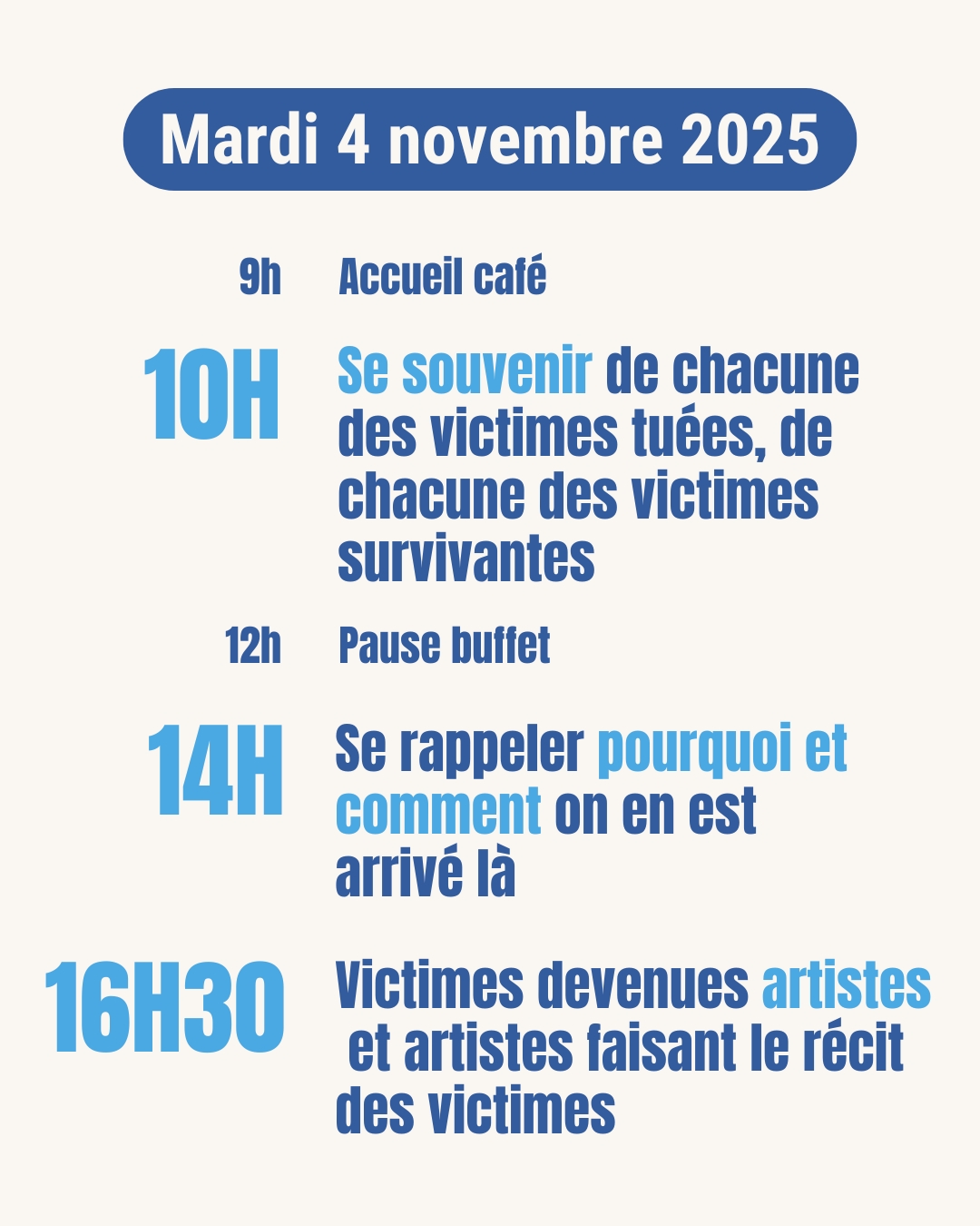 10H00 - Se souvenir de chacune des victimes tuées, de chacune des victimes survivantes